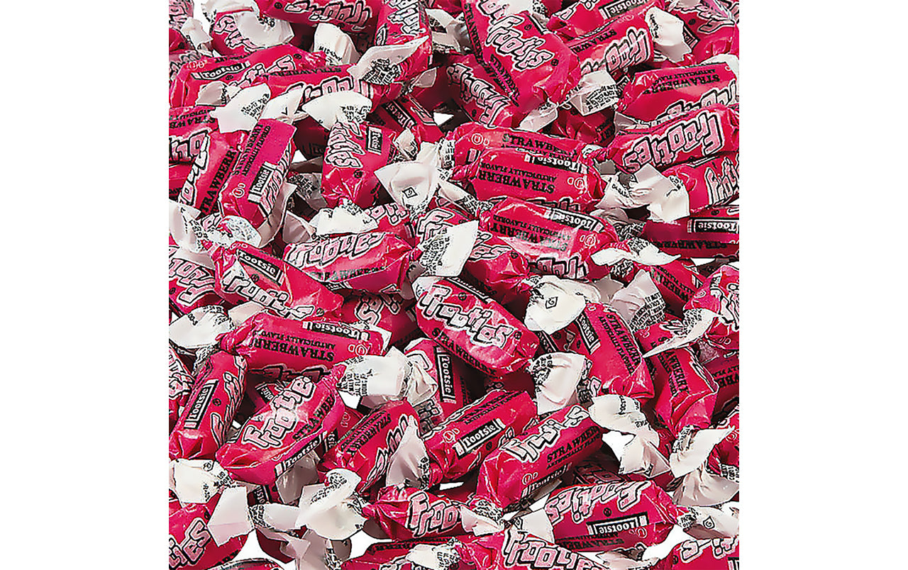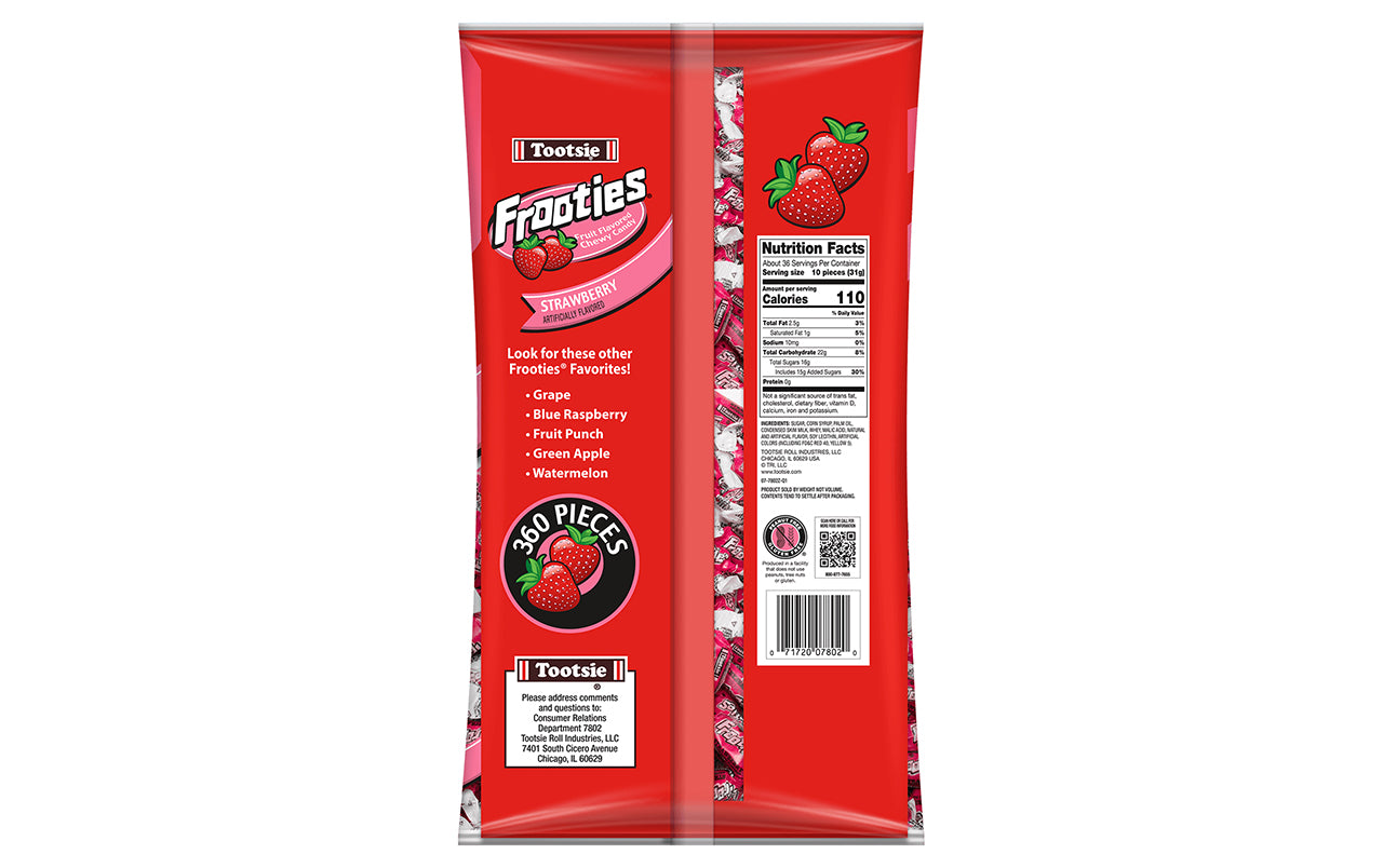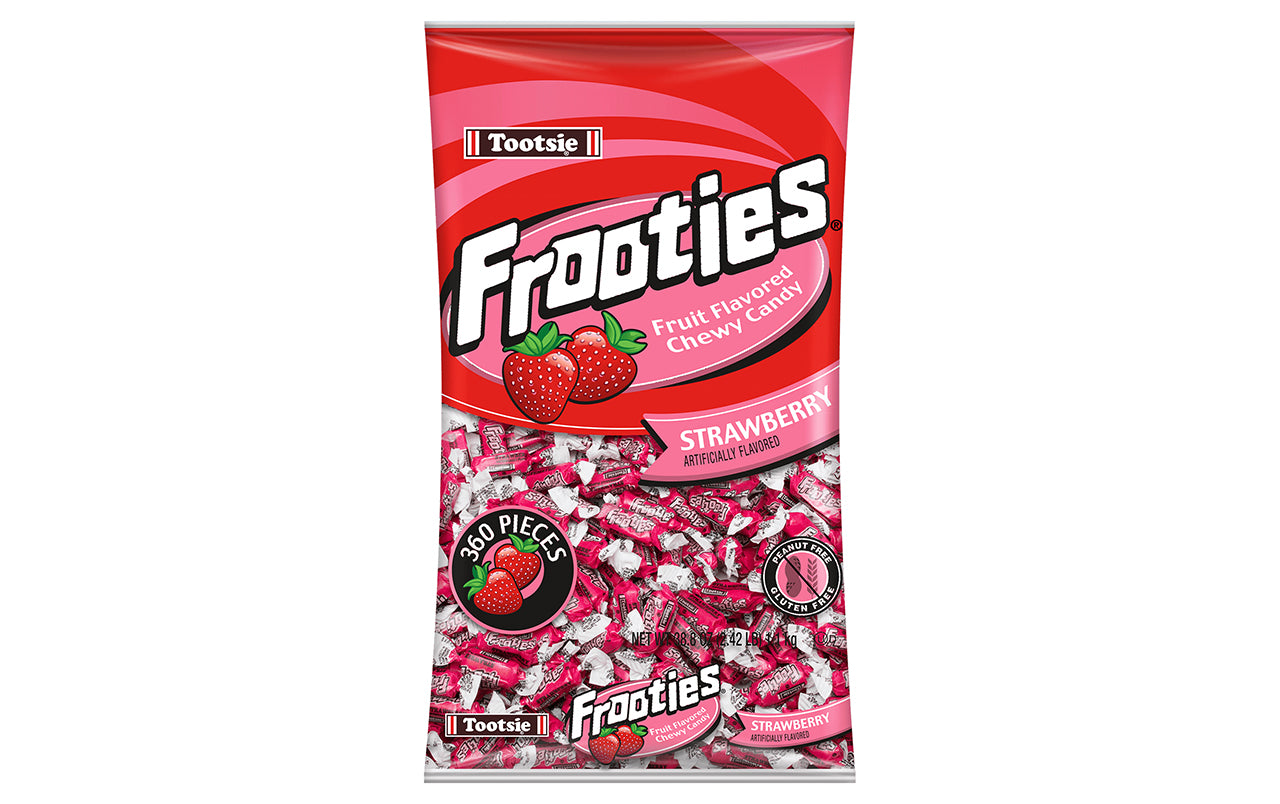 With the same great chew you love from Tootsie Rolls, and a sweet fruit flavor, Strawberry Frooties will have you instantly hooked! Each individually wrapped candy is soft, chewy, and bursting with ripe strawberry flavor. With 360 Strawberry Frooties in this bulk candy bag, there will be plenty to fill the piñata at your kids birthday party, or for the candy buffet at your next celebration.